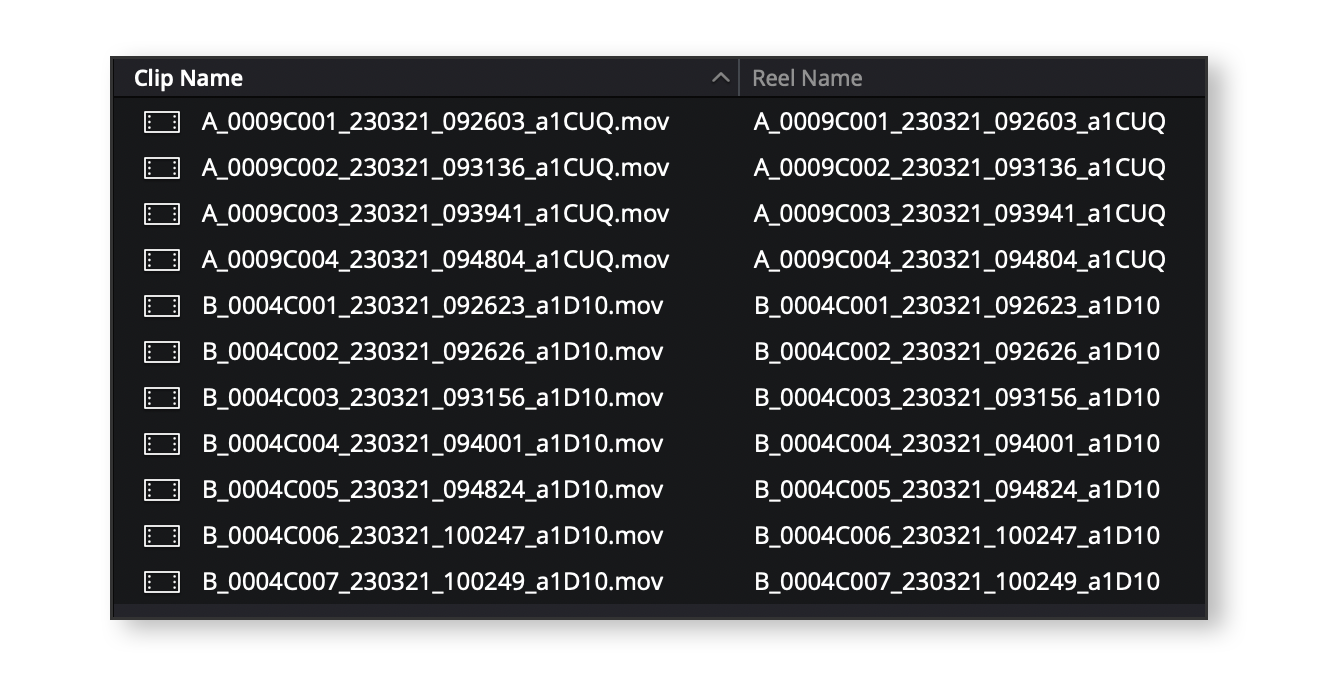 - if your clips have the same name as expected : clipname = filename = reelname